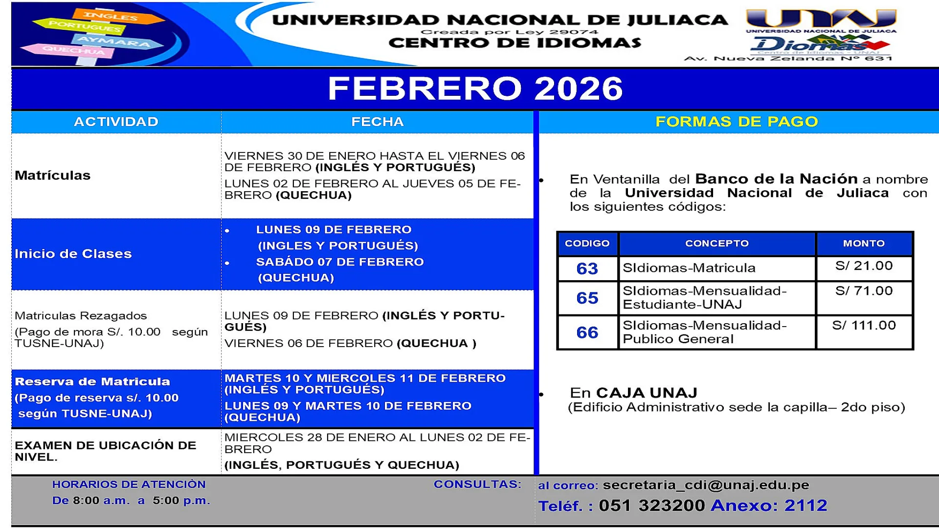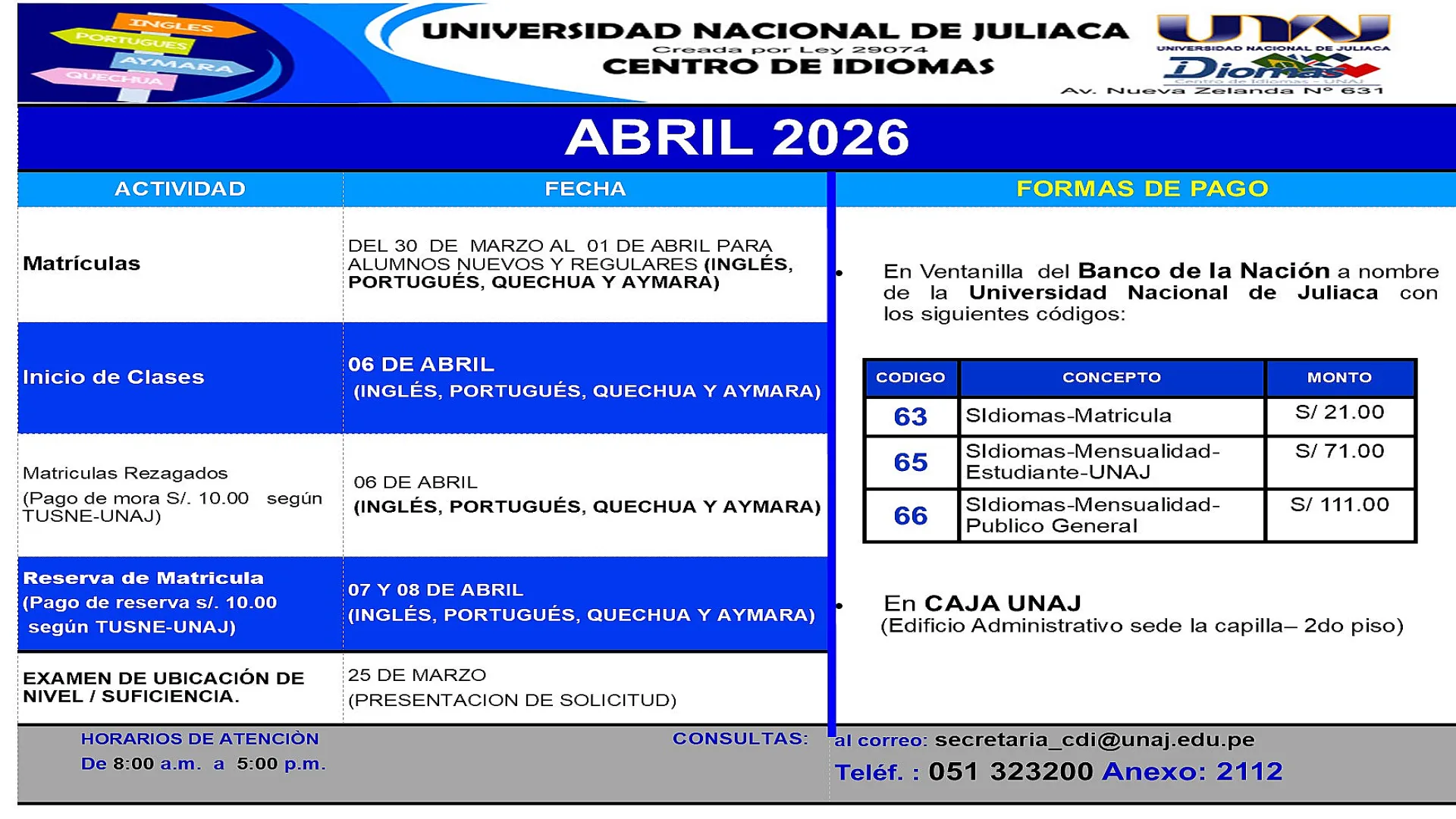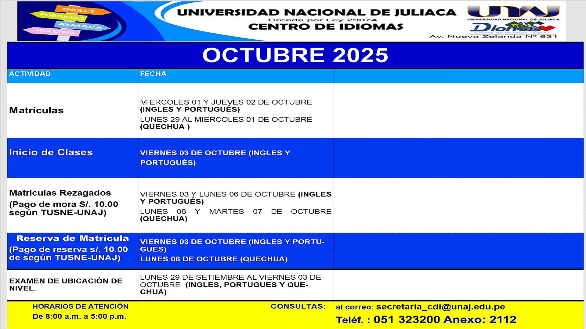 CENTRO DE IDIOMAS DE LA UNIVERSIDAD NACIONAL DE JULIACA