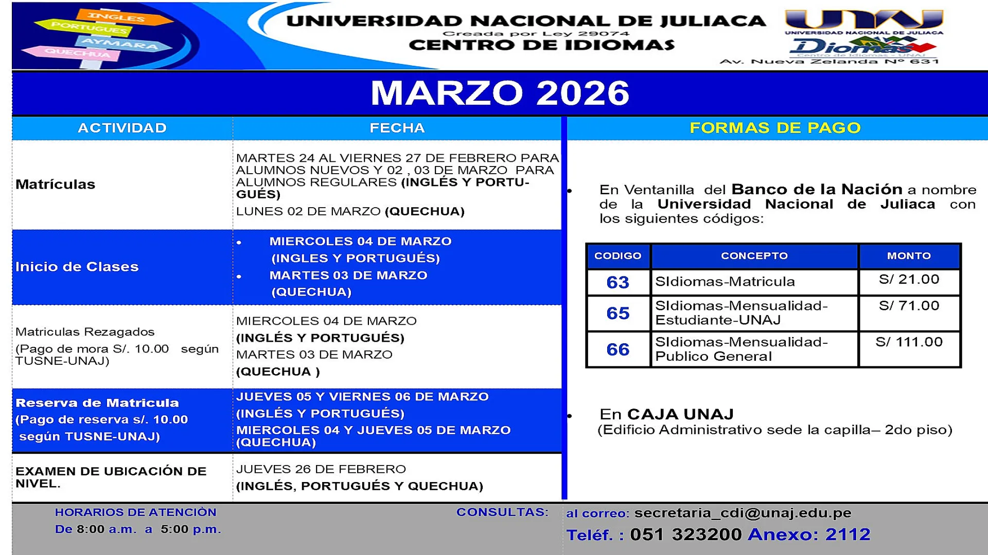 CENTRO DE IDIOMAS DE LA UNIVERSIDAD NACIONAL DE JULIACA