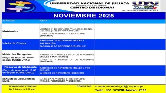 El Centro de idiomas imparte los programas académicos de los idiomas extranjeros Inglés y Portugués como las lenguas originarias de Quechua y Aymara, los cuales están estructurados en ciclos, que corresponde a los niveles: Básico, Intermedio y Avanzado, y se llevan de manera mensual de conformidad al calendario institucional anual de Centro de Idiomas; cuya finalidad es de obtención de Certificado y del Diploma.